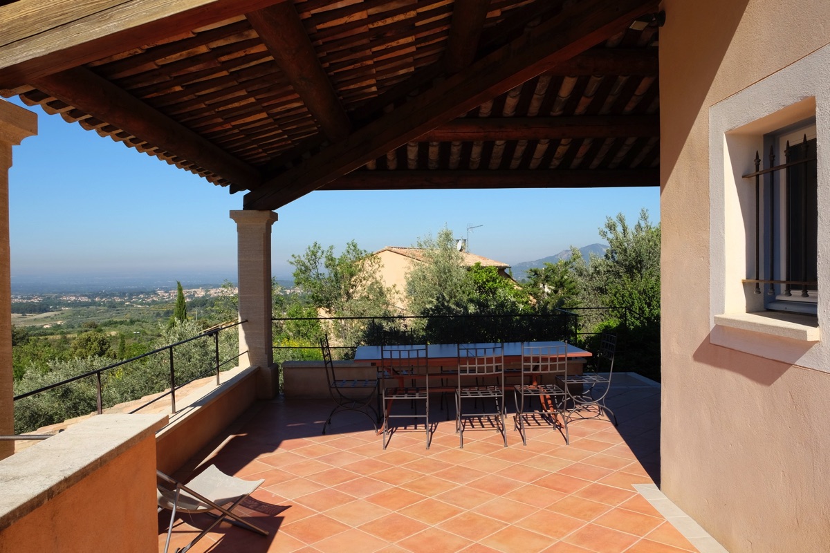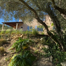 De villa bevindt zich op de zuidflank van het dorp omgeven door wijngaarden en olijfbomen.